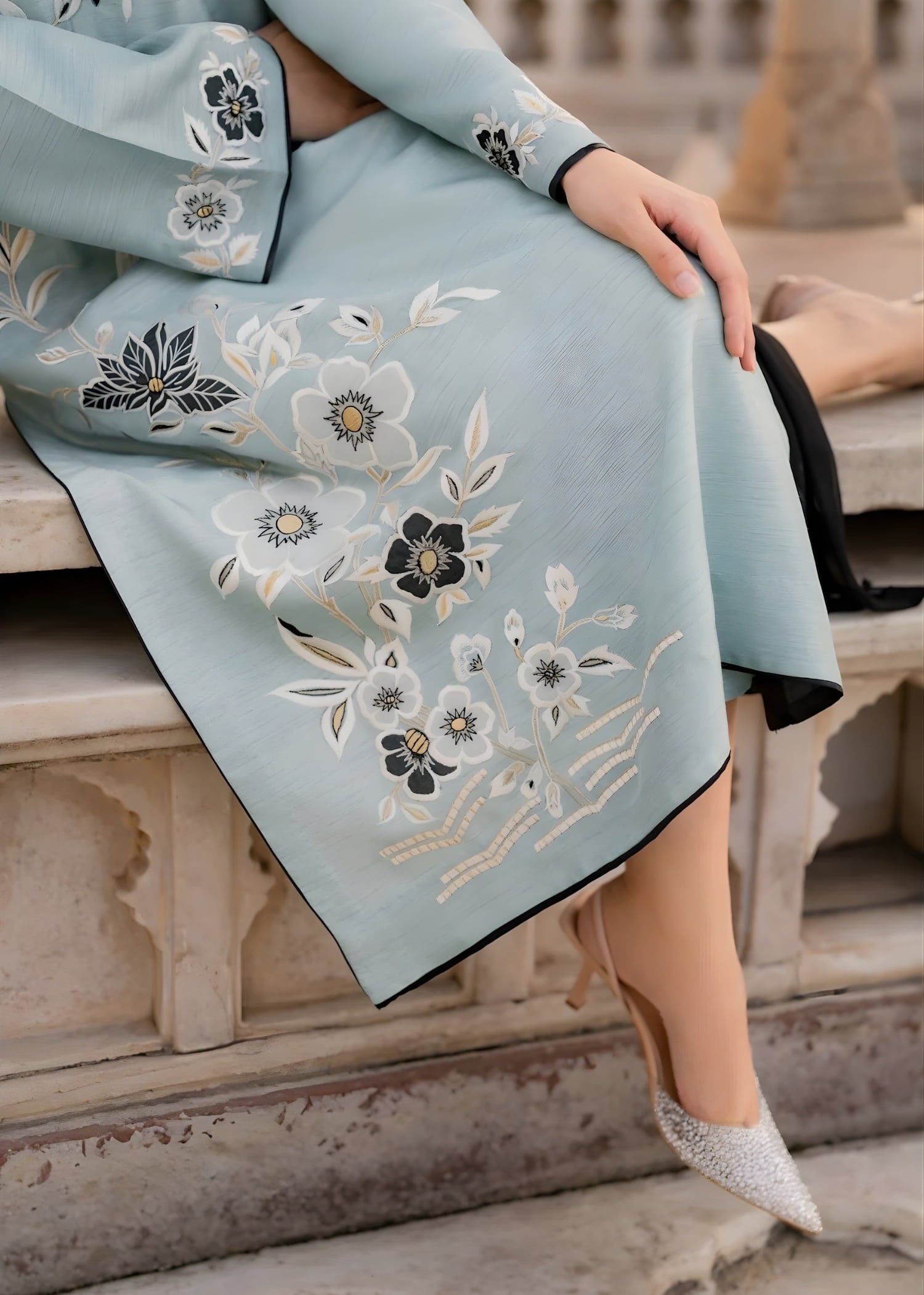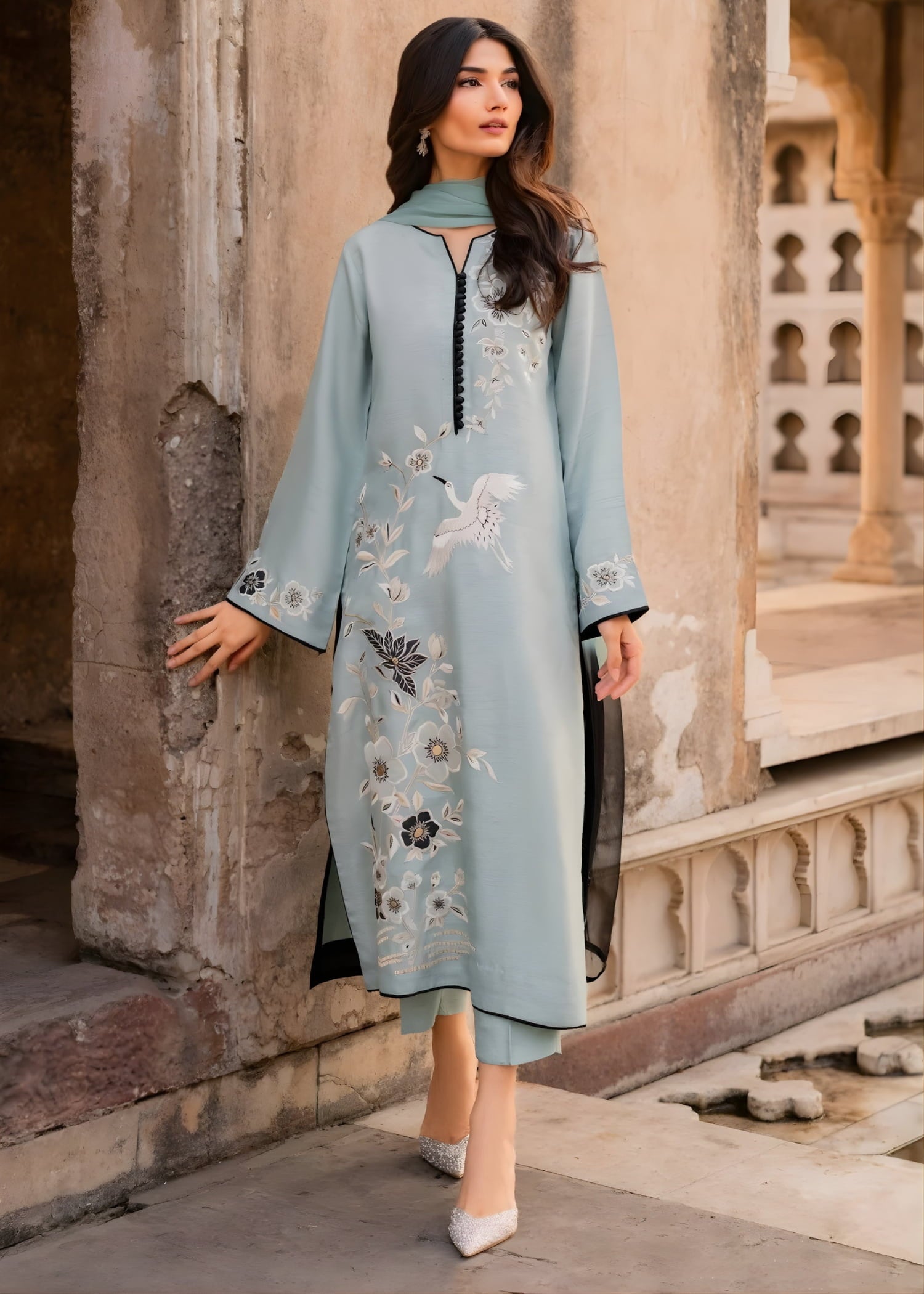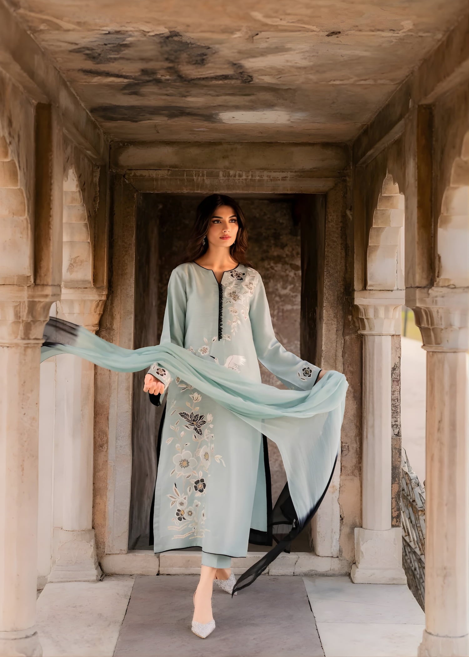 Redefine elegance this festive season with our Rameen Eid Summer Pret ’26 Ice Blue Ensemble. Crafted from cotton lawn, this exquisite outfit features soft floral embroidery along the front and sleeves, creating a fresh and graceful look perfect for Eid and summer celebrations. Designed for women who appreciate refined style, the flowing silhouette ensures both elegance and ease, blending tradition with contemporary charm effortlessly.