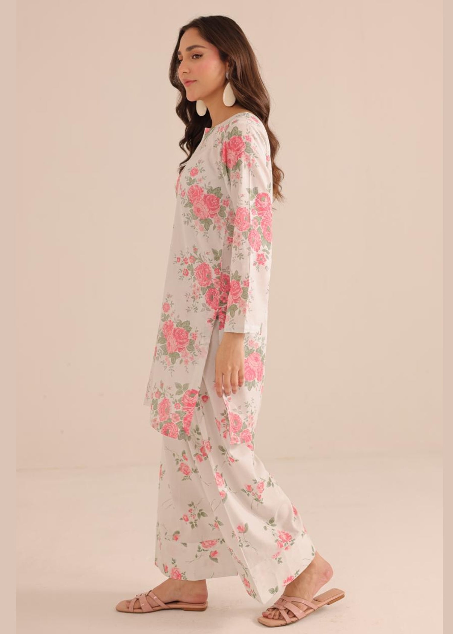 Stitched 2-piece outfit featuring a printed shirt and farshi shalwar. Crafted from premium grip fabric, this design blends elegance and comfort, making it perfect for both casual and semi-formal wear.