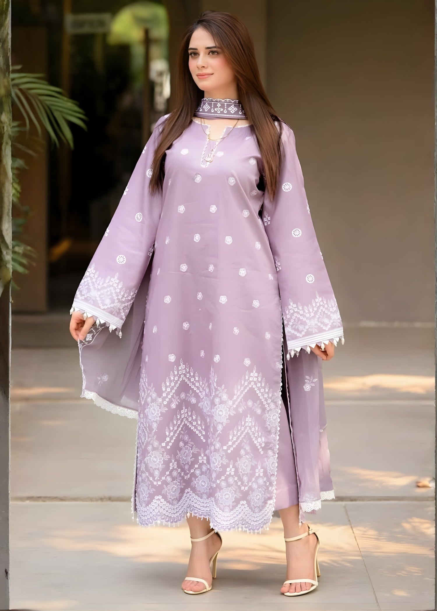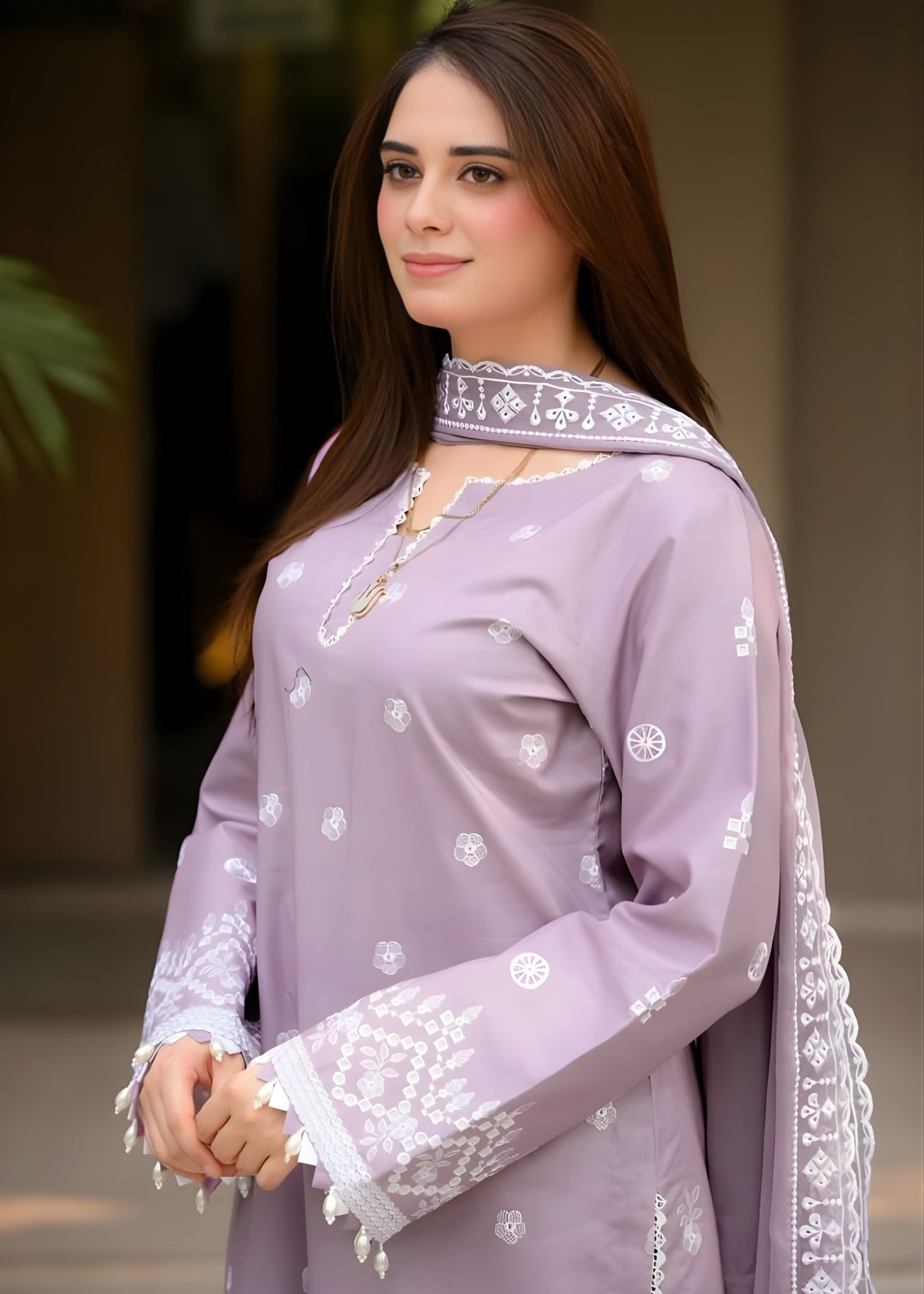 Elegance meets comfort in Lilac Charm, a beautifully embroidered 3-piece linen outfit designed to keep you effortlessly stylish this season. The soft lilac shade paired with delicate embroidery adds a touch of grace to your everyday look — perfect for casual outings, office wear, or relaxed gatherings.