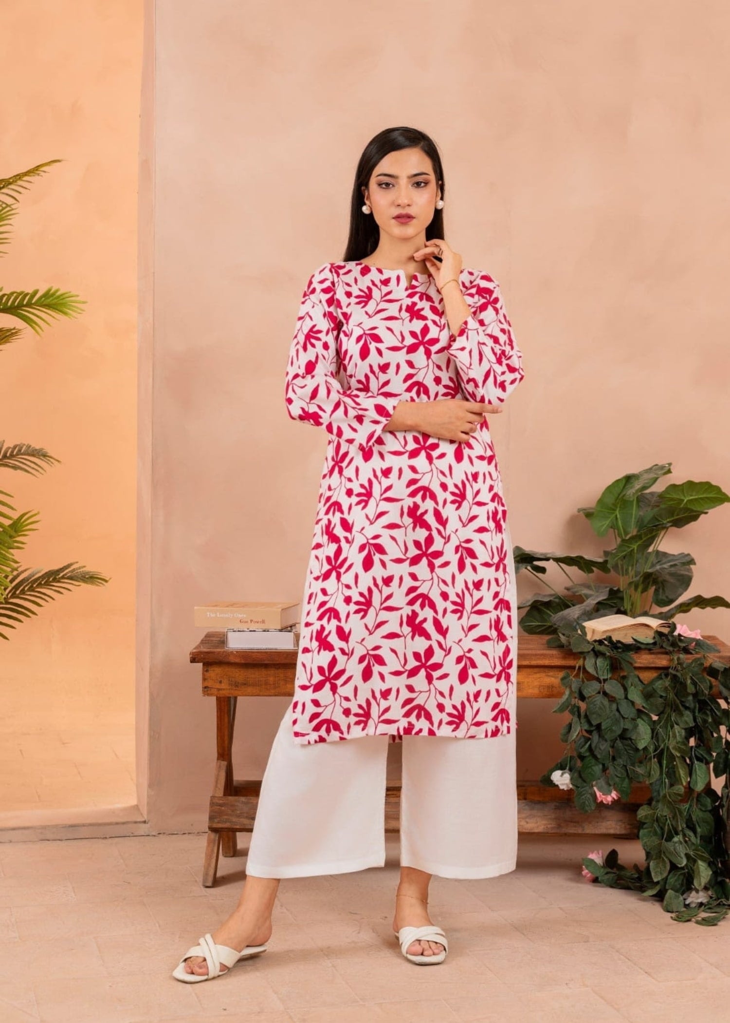 Keep it timeless and versatile with this two-piece white linen kurta set. The straight-cut kurta is paired with matching straight trousers, creating a graceful everyday look. Crafted from soft and breathable linen, this outfit is perfect for all seasons, offering both comfort and style. Ideal for daily wear, office looks, or casual outings.