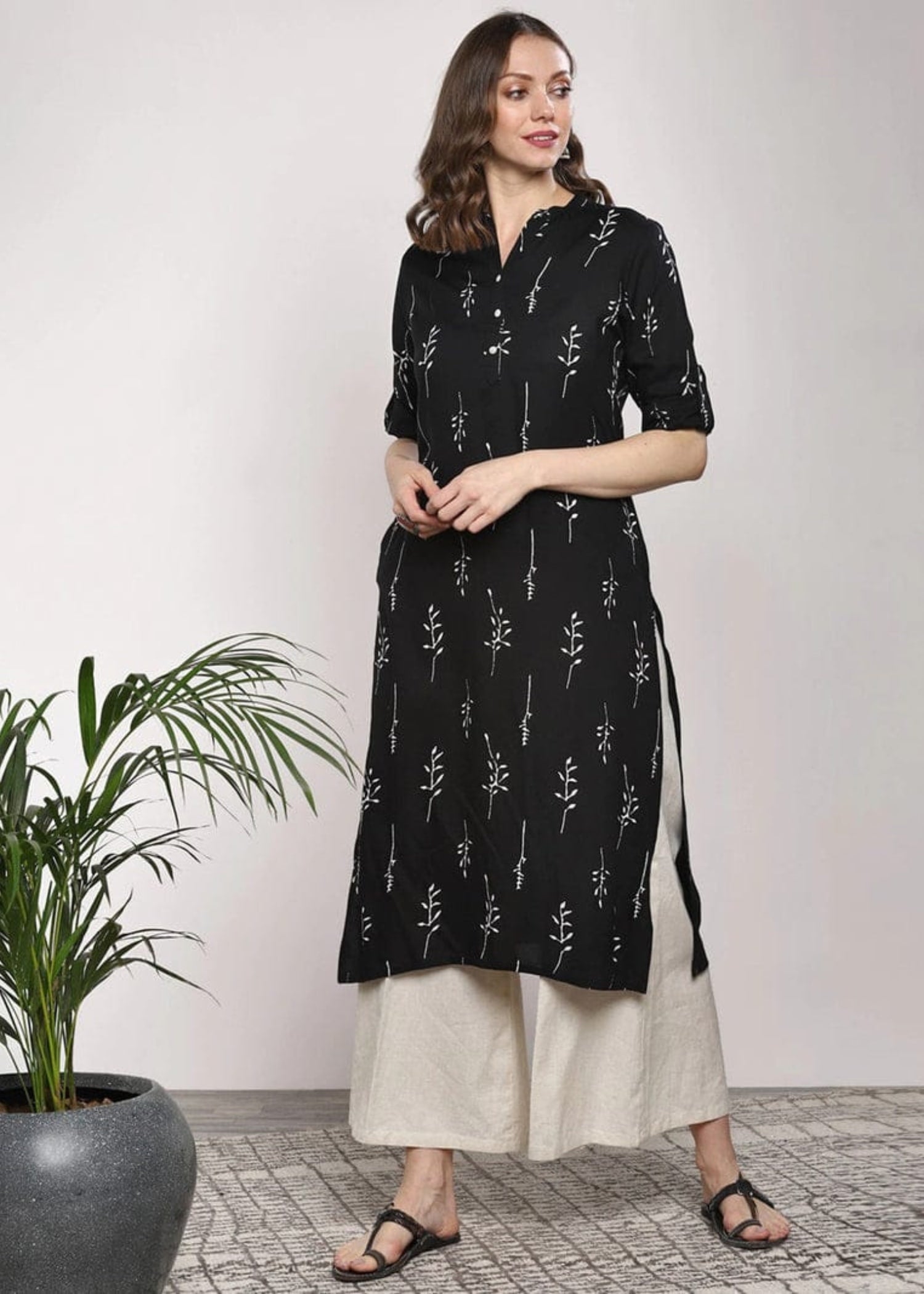 Stay cozy and stylish this season with our two-piece black linen kurta set. Designed with a straight-cut paste-printed kurta and matching trousers, this outfit is perfect for effortless winter wear. Crafted from premium linen, it provides warmth and comfort while keeping your everyday look chic and versatile. Ideal for daily wear, work, or casual gatherings.