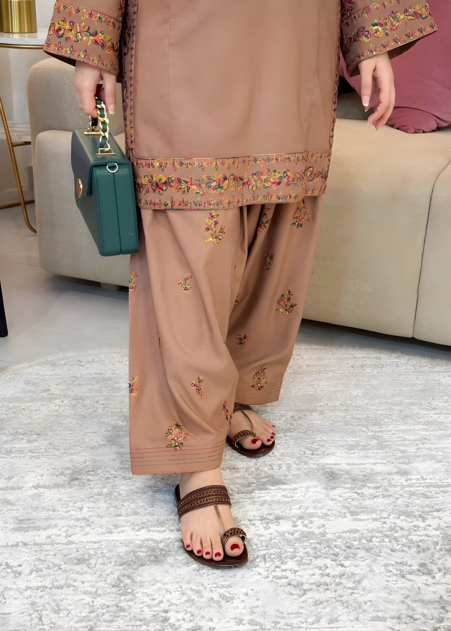 MEHRAAN is a premium 2-piece stitched outfit crafted from luxury pure mid-season fabric. Featuring a fully multi-embroidered shirt paired with an elegantly embroidered shalwar, this ensemble delivers timeless sophistication with all-day comfort—perfect for festive, formal, and semi-formal occasions.