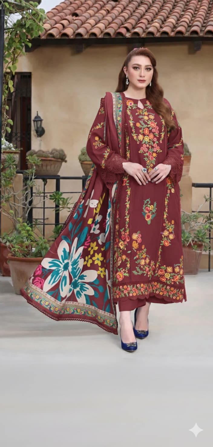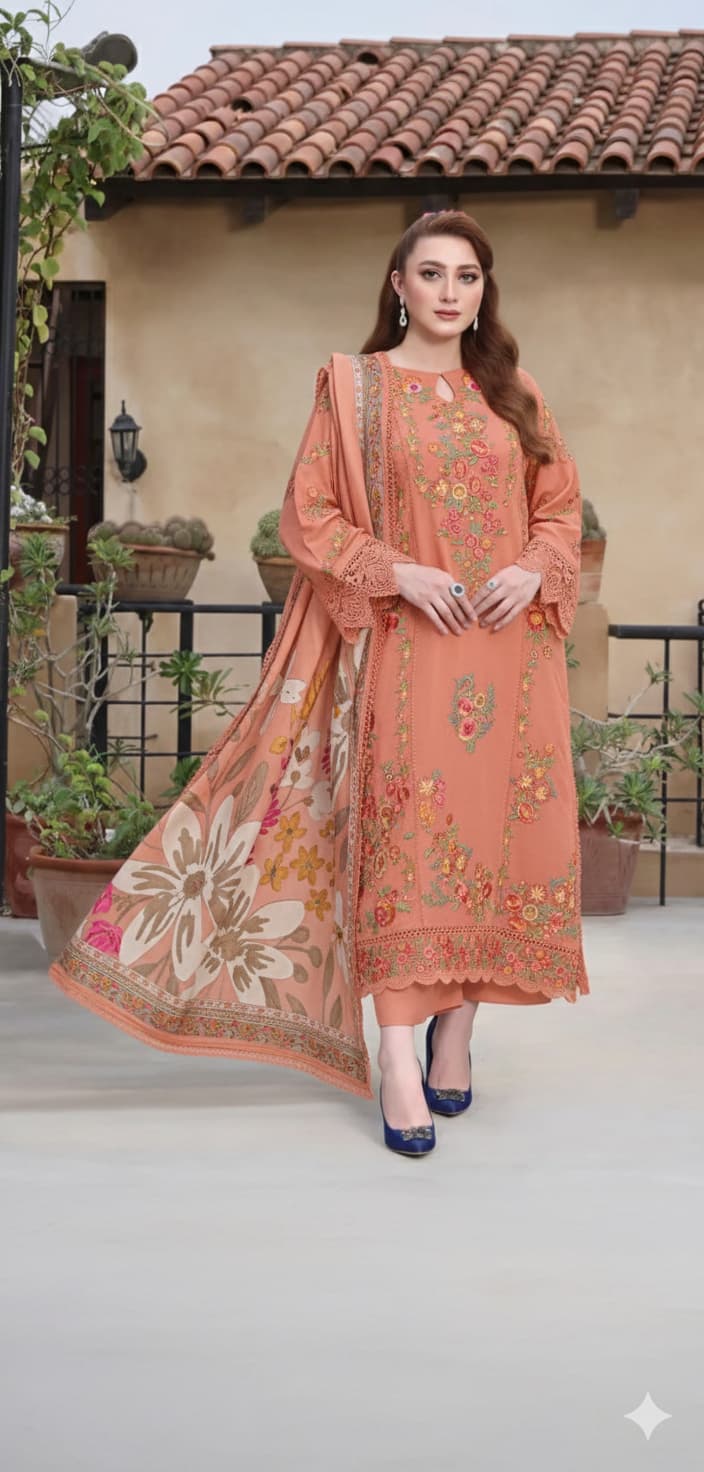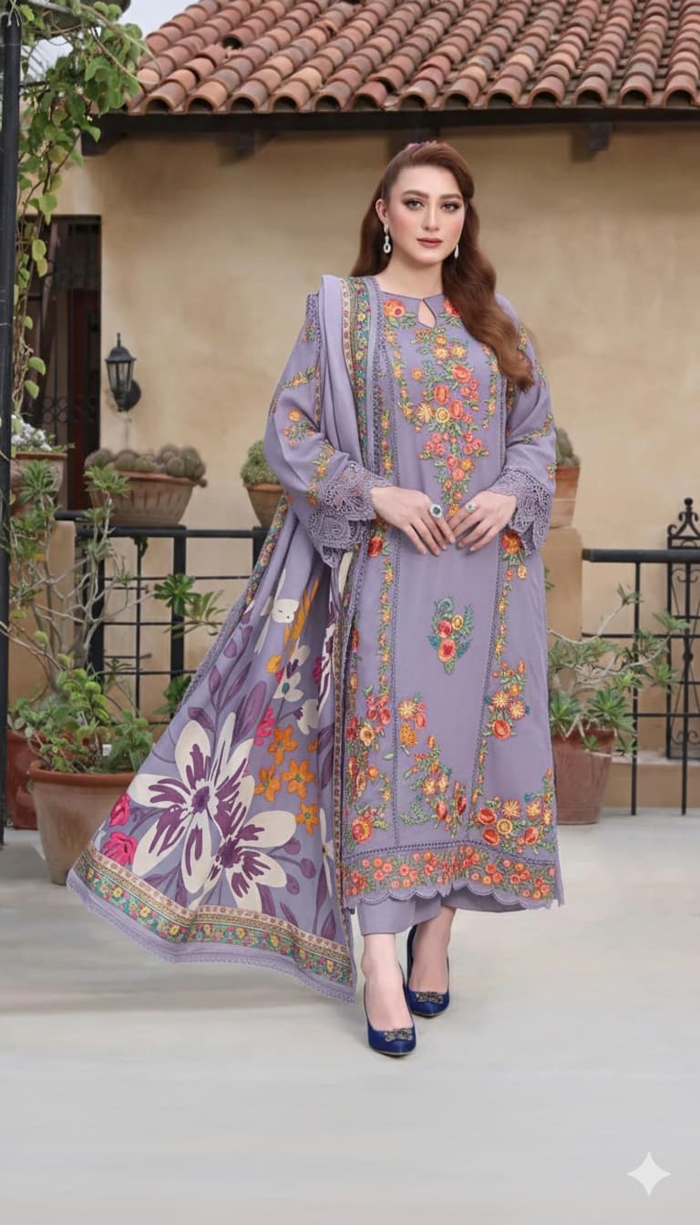 Crafted with premium summer cotton, this 3-piece embroidered outfit is designed to keep you cool while offering effortless elegance. The breathable, lightweight texture paired with delicate embroidery creates a refined and graceful look — making it a perfect choice for summer-weather wear, daytime gatherings.
