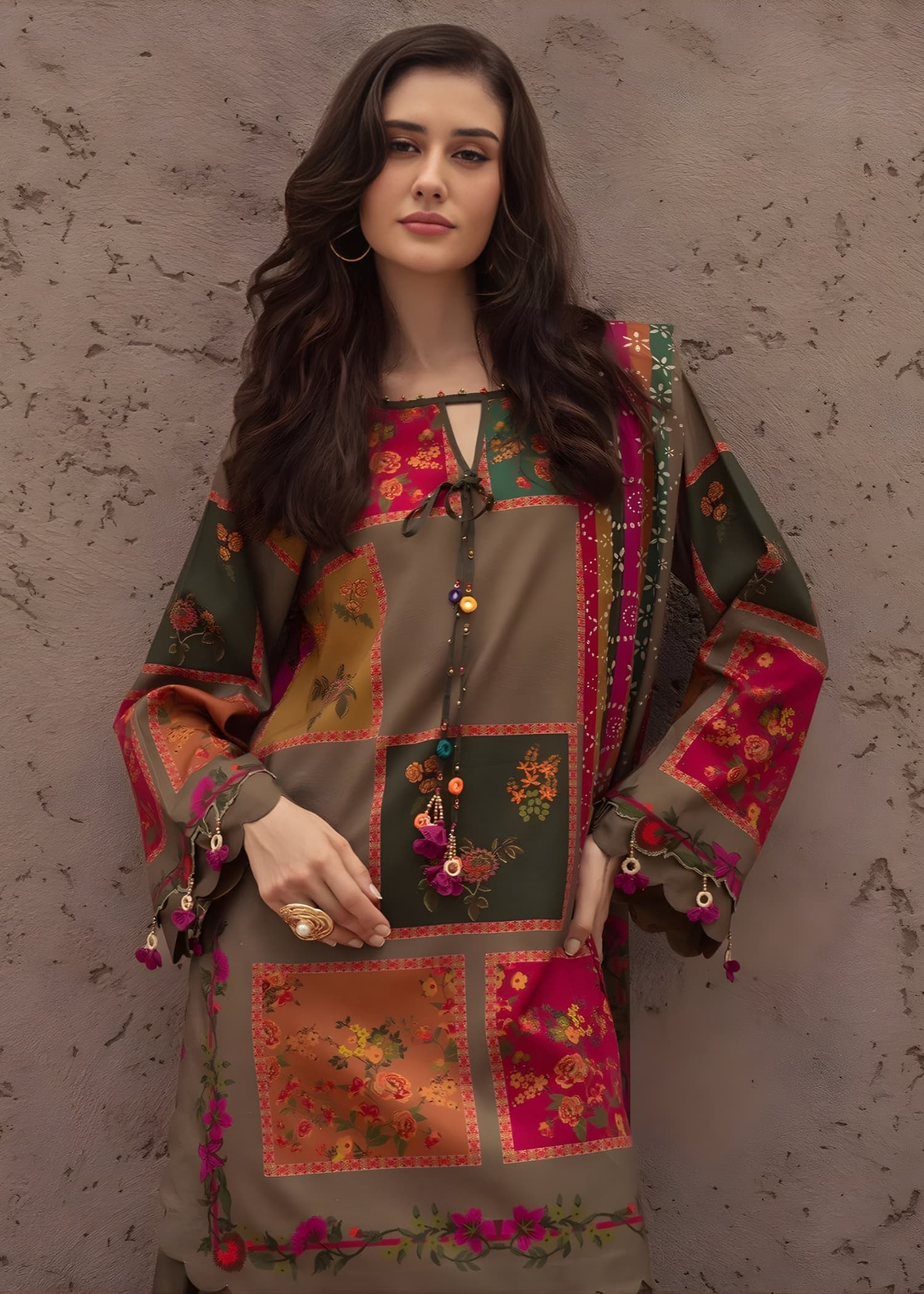Introducing Ruhi Noor, a premium 3-piece embroidered outfit crafted from high-quality Linen, designed to elevate your winter wardrobe with timeless grace. The striking shocking-pink hue, paired with intricate embroidery on the shirt front and sleeves, creates a refined festive look ideal for winter gatherings, family events, and elegant celebrations. Its soft drape, premium finish, and classic styling make Ruhi Noor a standout choice for the season.