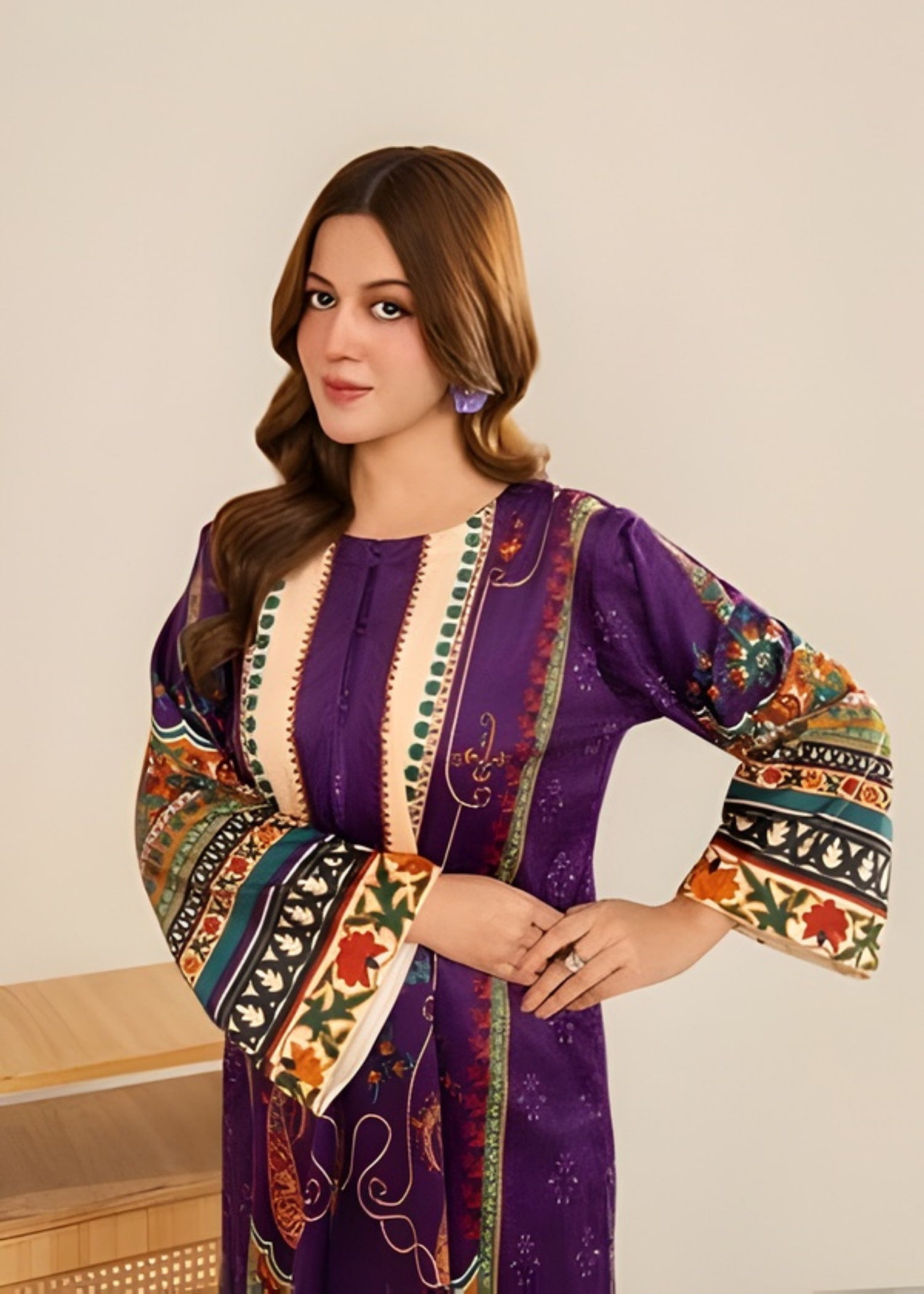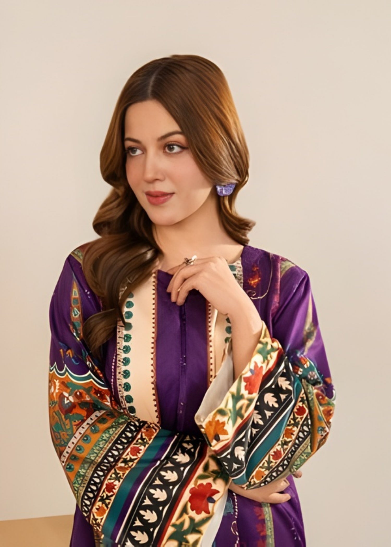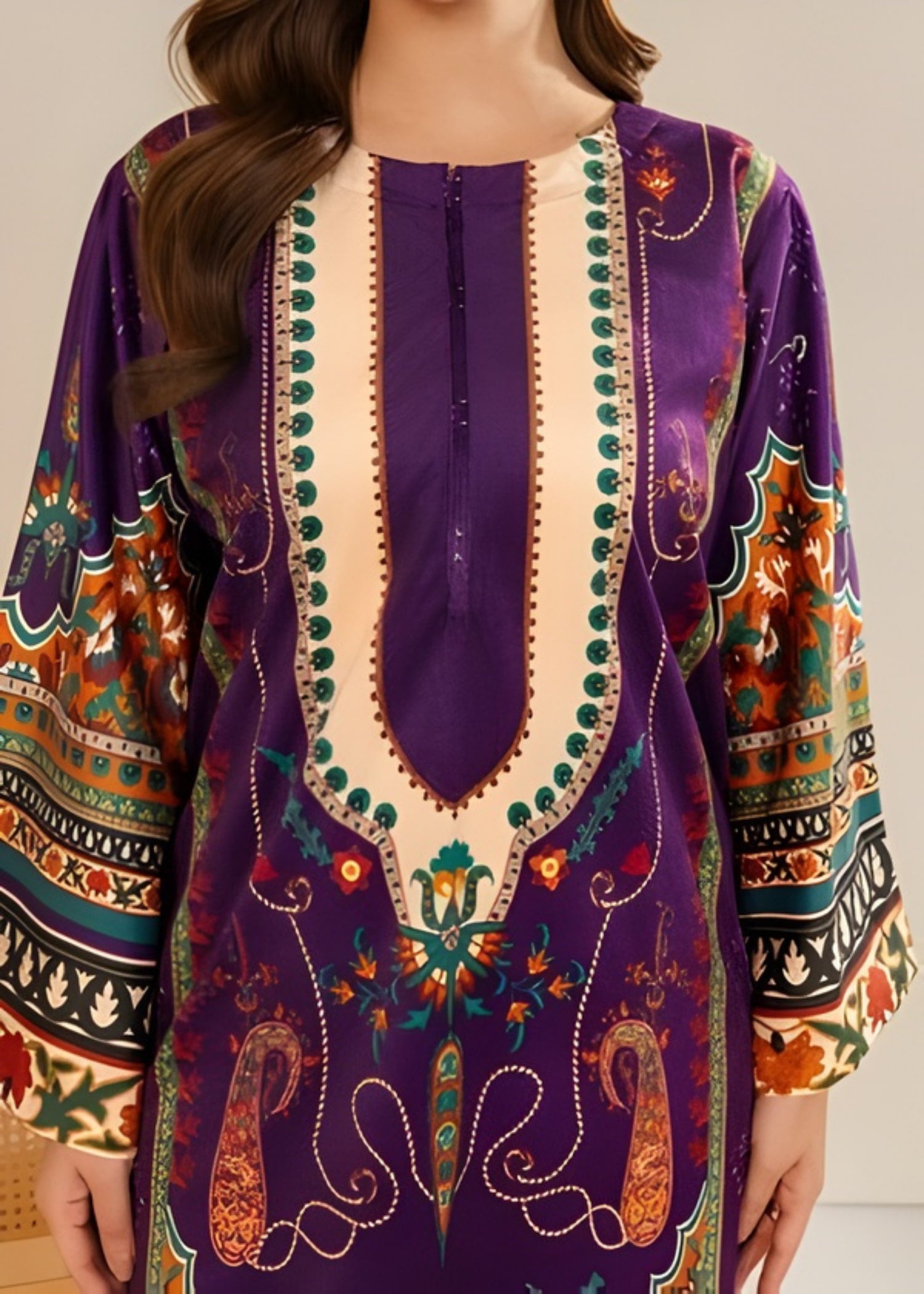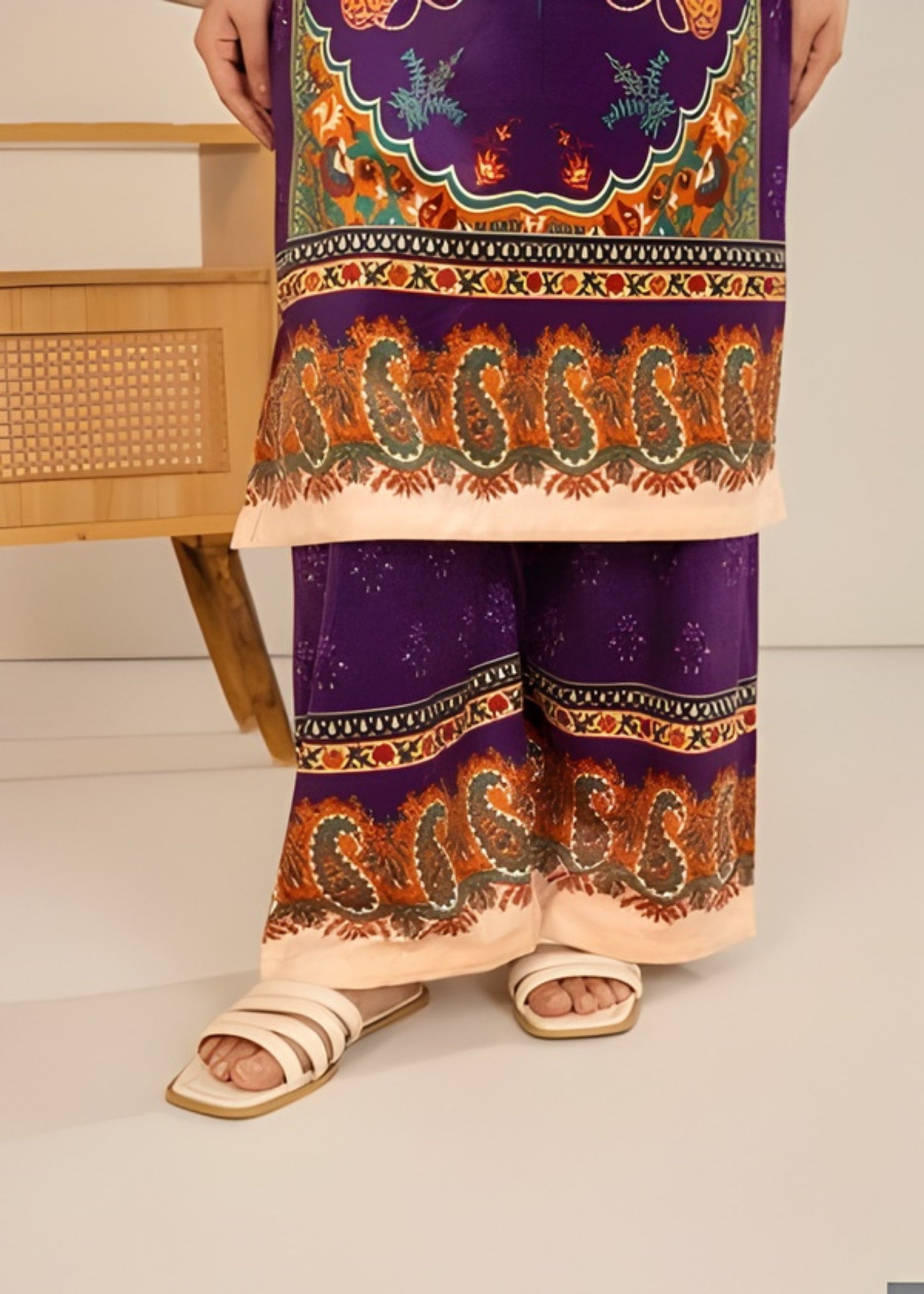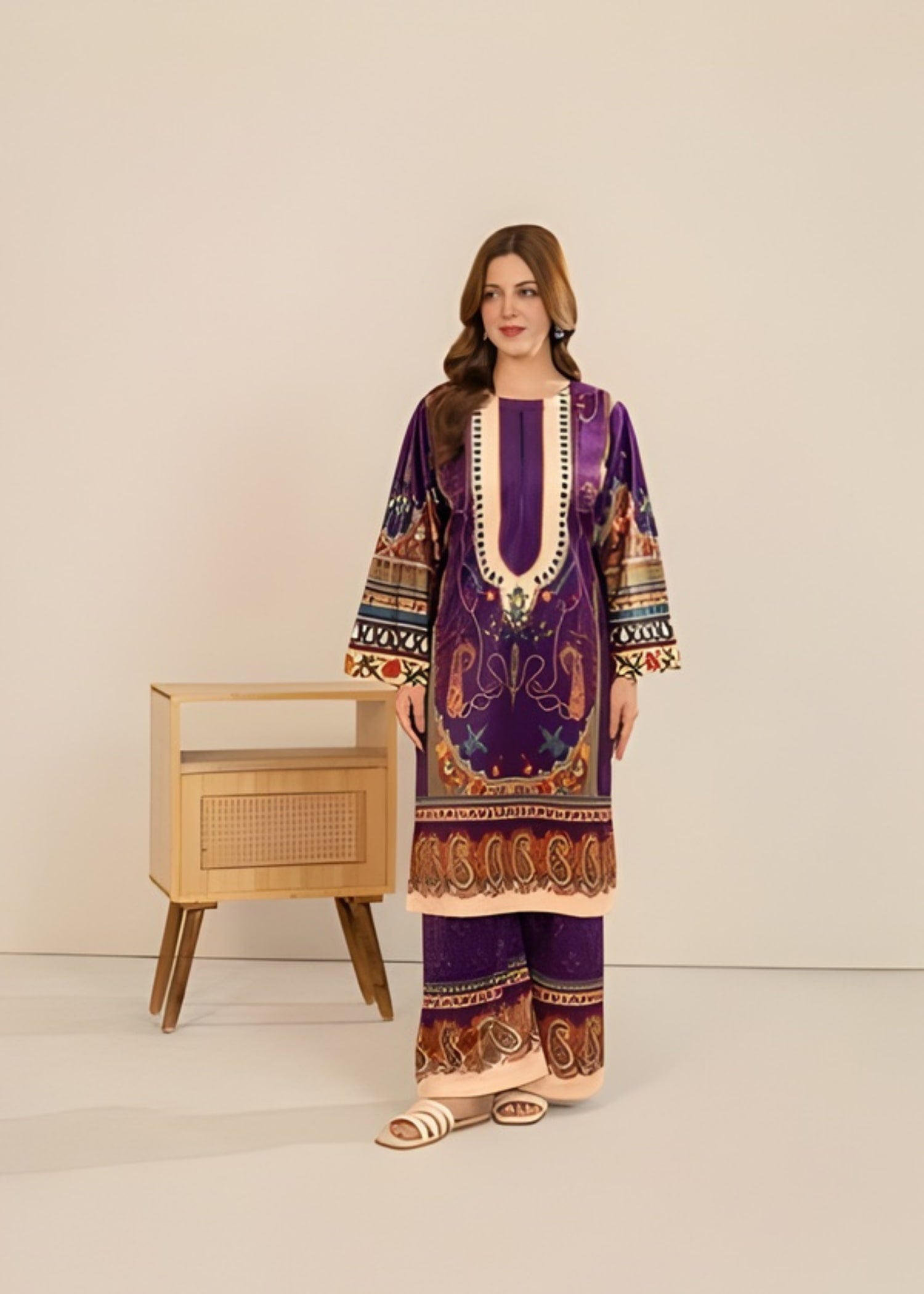 Elevate your winter wardrobe with this Velvet Purple Heart 2-Piece, designed with premium soft velvet to keep you warm and stylish throughout the season. Featuring a sublimation printed design with a purple heart theme, this outfit combines elegance with comfort. The straight-cut shirt paired with bell-bottom trousers gives a chic and trendy winter look suitable for casual outings and gatherings.